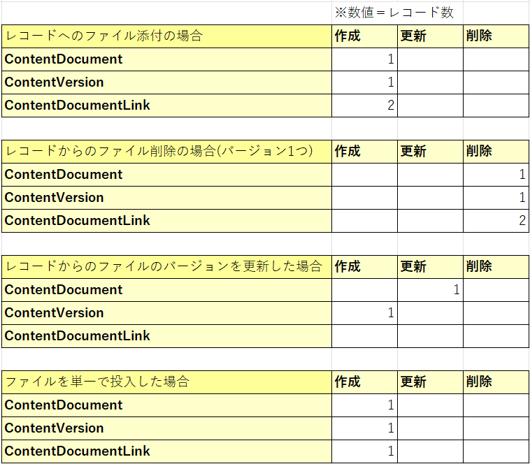 まずは各操作でのファイル周りのレコードの挙動まとめ